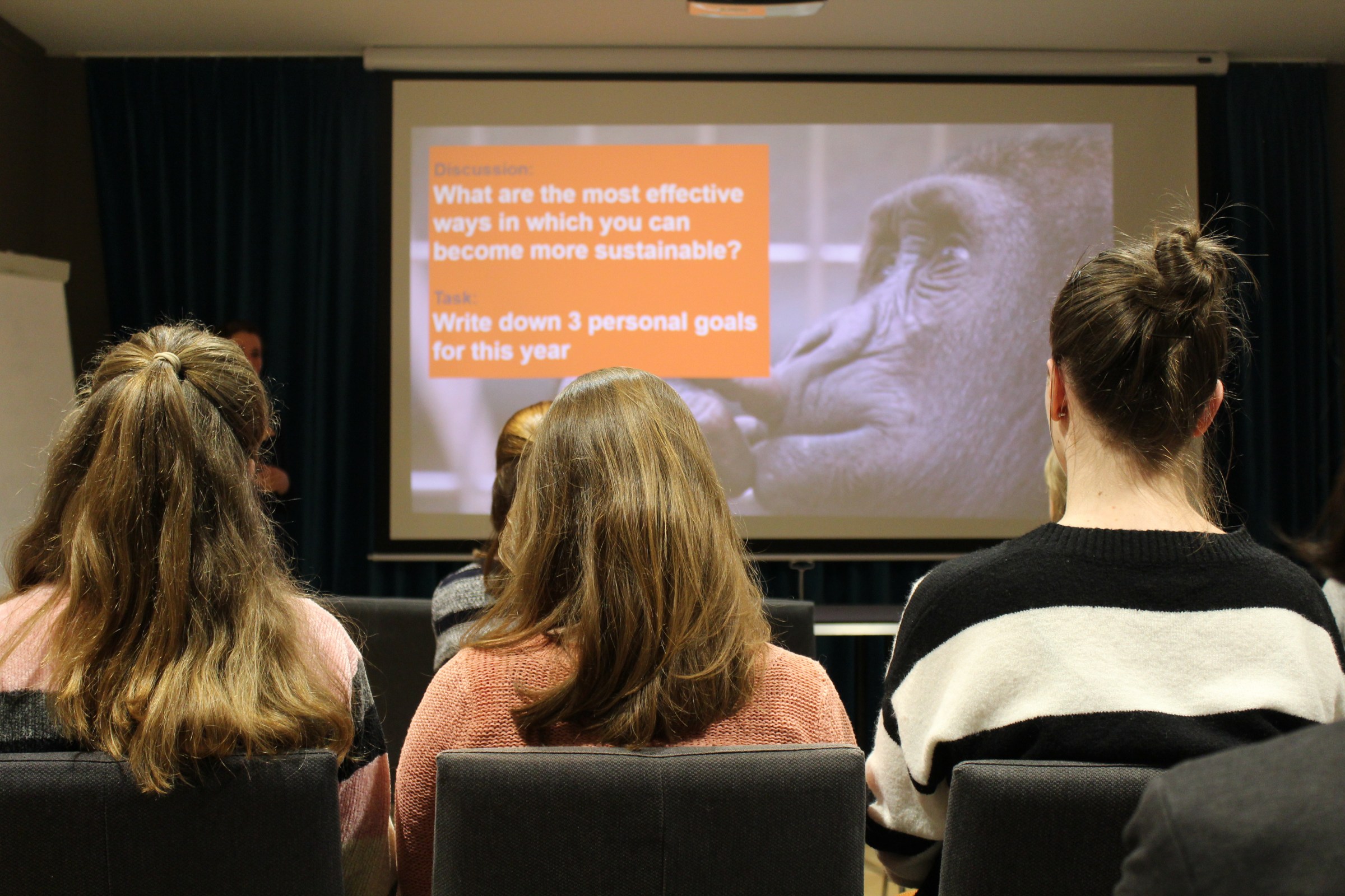 Erst richtig wurde die Diskussion aber entfacht, als Frau Eckle zur Frage kam, wie man selbst „moresustainable“ sein kann. Zu den grössten„CO2-Sünden“ gehören Dinge wie Flugreisen, Autofahren und Fleischkonsum, also gilt es gerade diese möglichst zu reduzieren.